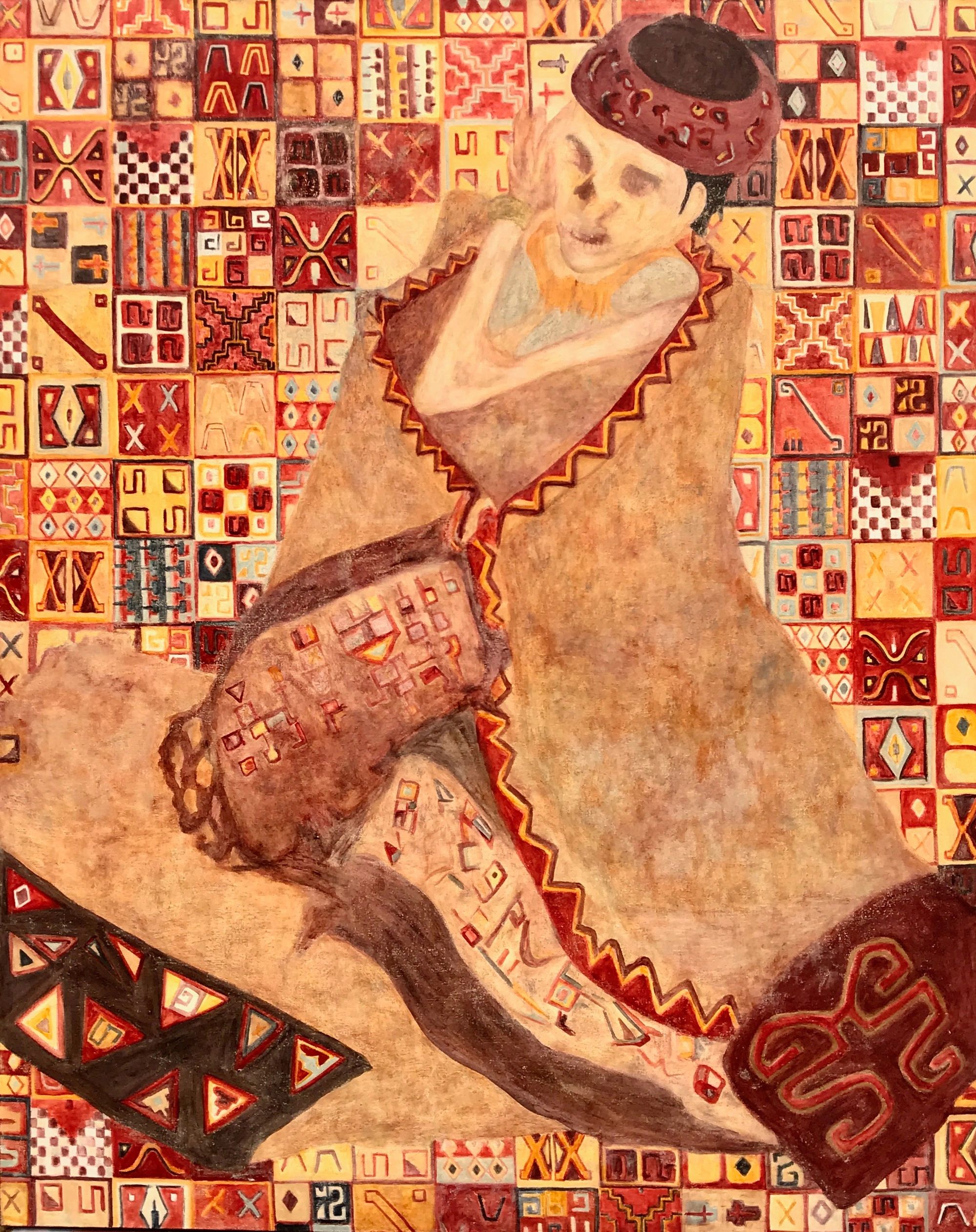 SACRED SLEEP - RAMESSES -Oil on canvas with inked linen wrappings - 16 x 23".jpg
